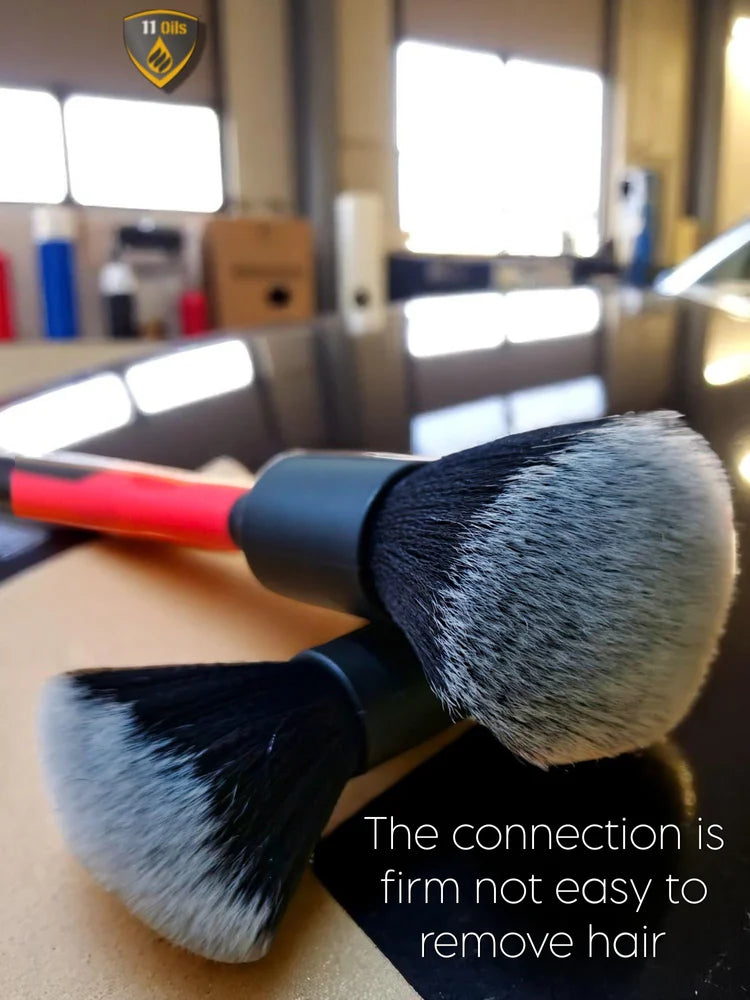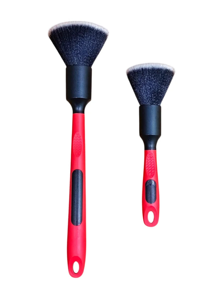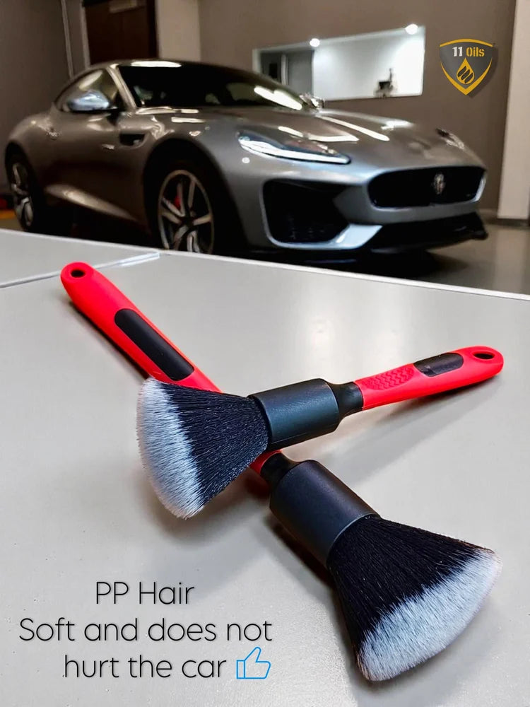 - PCC Ultra-Soft Detailing Brushes, Set of 2, are the perfect tools for cleaning delicate surfaces like dashboards, centre consoles, screens, air vents, and genuine leather seats. With extra length, they are perfect for getting into lug nuts, narrow spaces, and tight areas. They aren't just great for detailing cars, but they make motorcycle, RV, boat, and home detail cleaning jobs easier too. These car detailing brushes' upgraded synthetic bristles make them gentle enough to use for furniture with a prized piano lacquer finish. Pet owners also benefit, as these brushes are great for quickly and safely removing pet hair, dust, and other debris from surfaces that are prone to scratching.