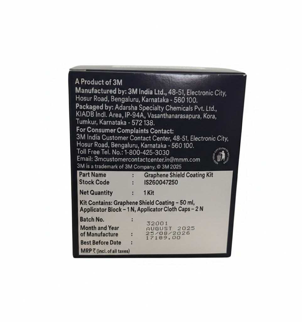 3M Graphene Shield Coating Kit is an advanced, polymer-based, moisture-curing protective layer for vehicle paint and other surfaces. It is infused with graphene nanotechnology to provide superior protection and a deep, mirror-like gloss.Key features and benefits include: